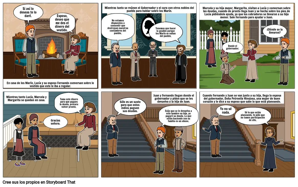 Mientras tanto se reúnen el Gobernador y el cura con otros nobles del pueblo para hablar sobre los Marín.