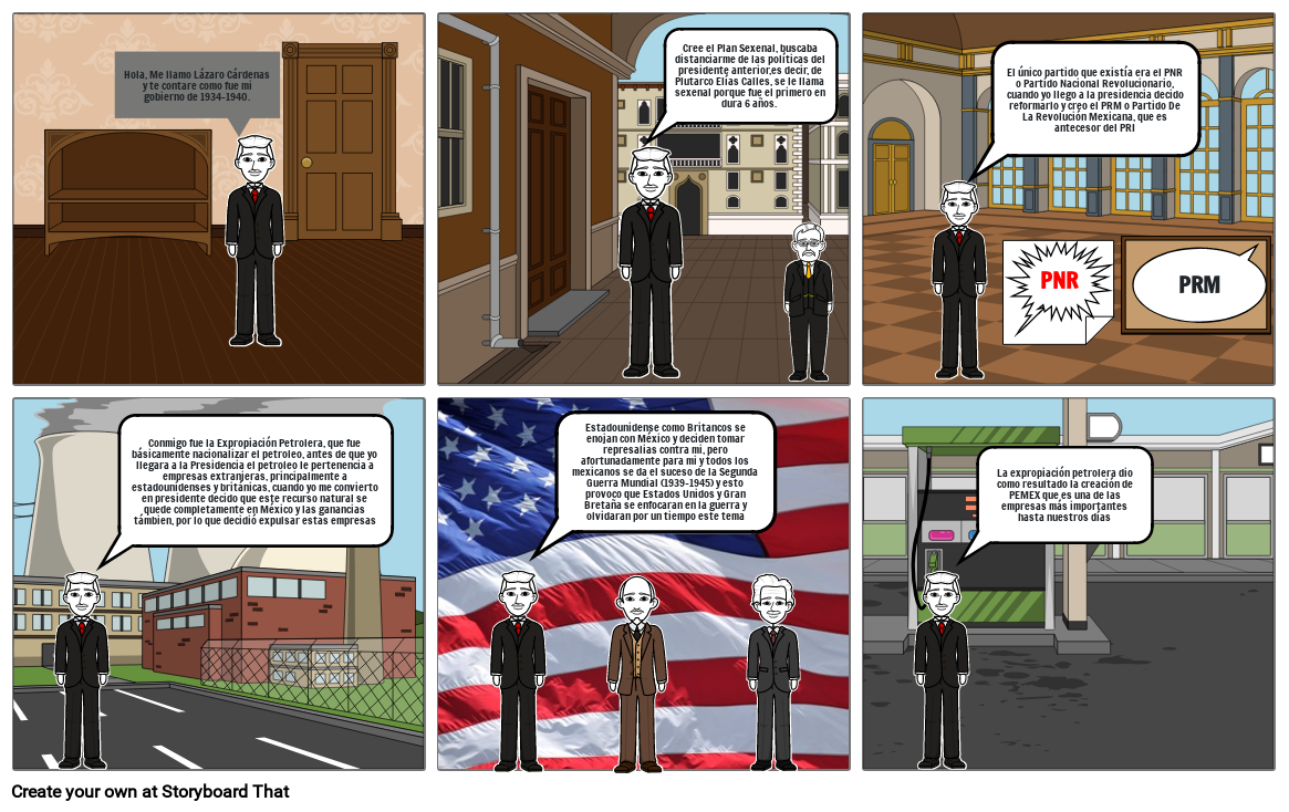 Conmigo fue la Expropiación Petrolera, que fue básicamente nacionalizar el petroleo, antes de que yo llegara a la Presidencia el petroleo le pertenencia a empresas extranjeras, principalmente a estadounidenses y británicas, cuando yo me convierto en presidente decido que este recurso natural se quede completamente en México y las ganancias támbien, por lo que decidió expulsar estas empresas