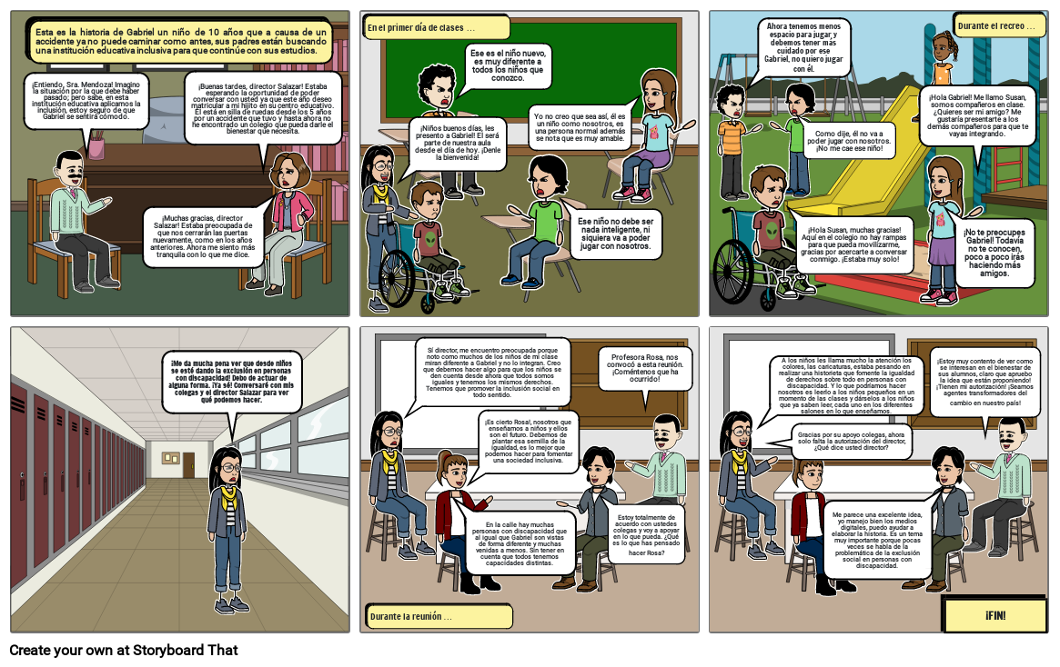 ¡Me da mucha pena ver que desde niños se esté dando la exclusión en personas con discapacidad! Debo de actuar de alguna forma. ¡Ya sé! Conversaré con mis colegas y el director Salazar para ver qué podemos hacer.