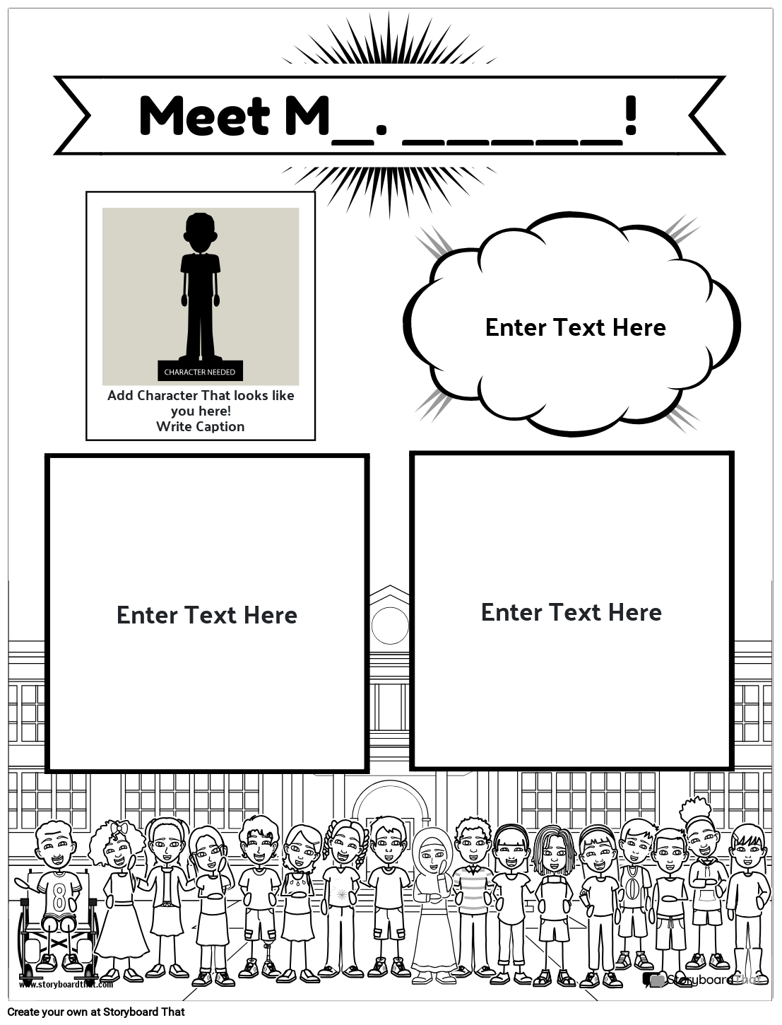 مشهد الطلاب والمدرسة باللونين الأبيض والأسود لسهولة الطباعة أو التلوين! تعد أوراق العمل القابلة للتخصيص والطباعة "لقاء مع المعلم" طريقة رائعة لتقديم نفسك لطلابك وعائلاتهم!