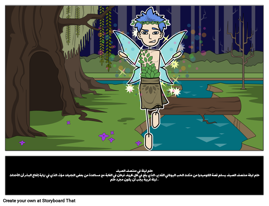 حلم ليلة في منتصف الصيفحلم ليلة منتصف الصيف يسلم قصة الكوميديا من مثلث الحب اليوناني القديم، الذي يقع في ظل ظروف فرحان في الغابة مع مساعدة من بعض الجنيات مؤذ، الذي في نهاية إقناع البشر أن الأحداث ليلة غريبة يجب أن يكون مجرد حلم .