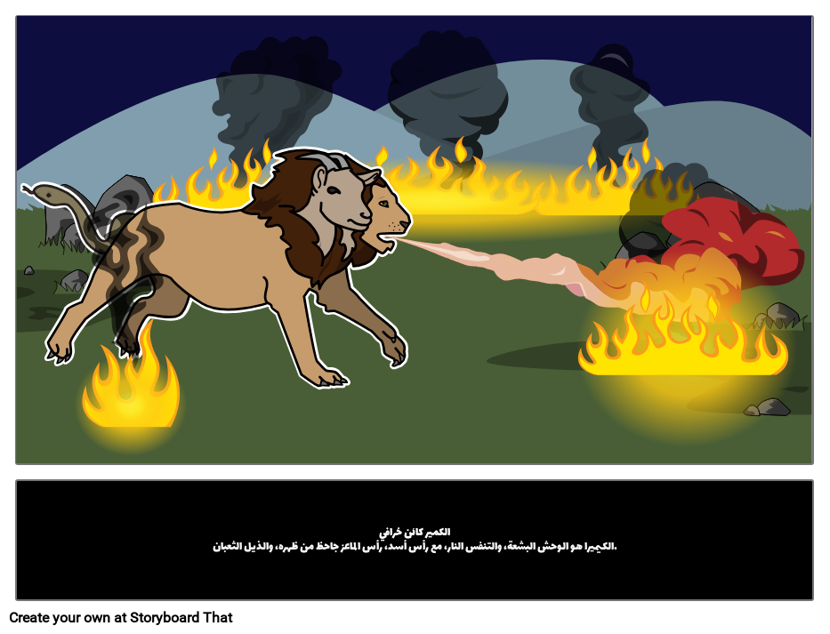 الكمير كائن خرافيالكيميرا هو الوحش البشعة، والتنفس النار، مع رأس أسد، رأس الماعز جاحظ من ظهره، والذيل الثعبان.