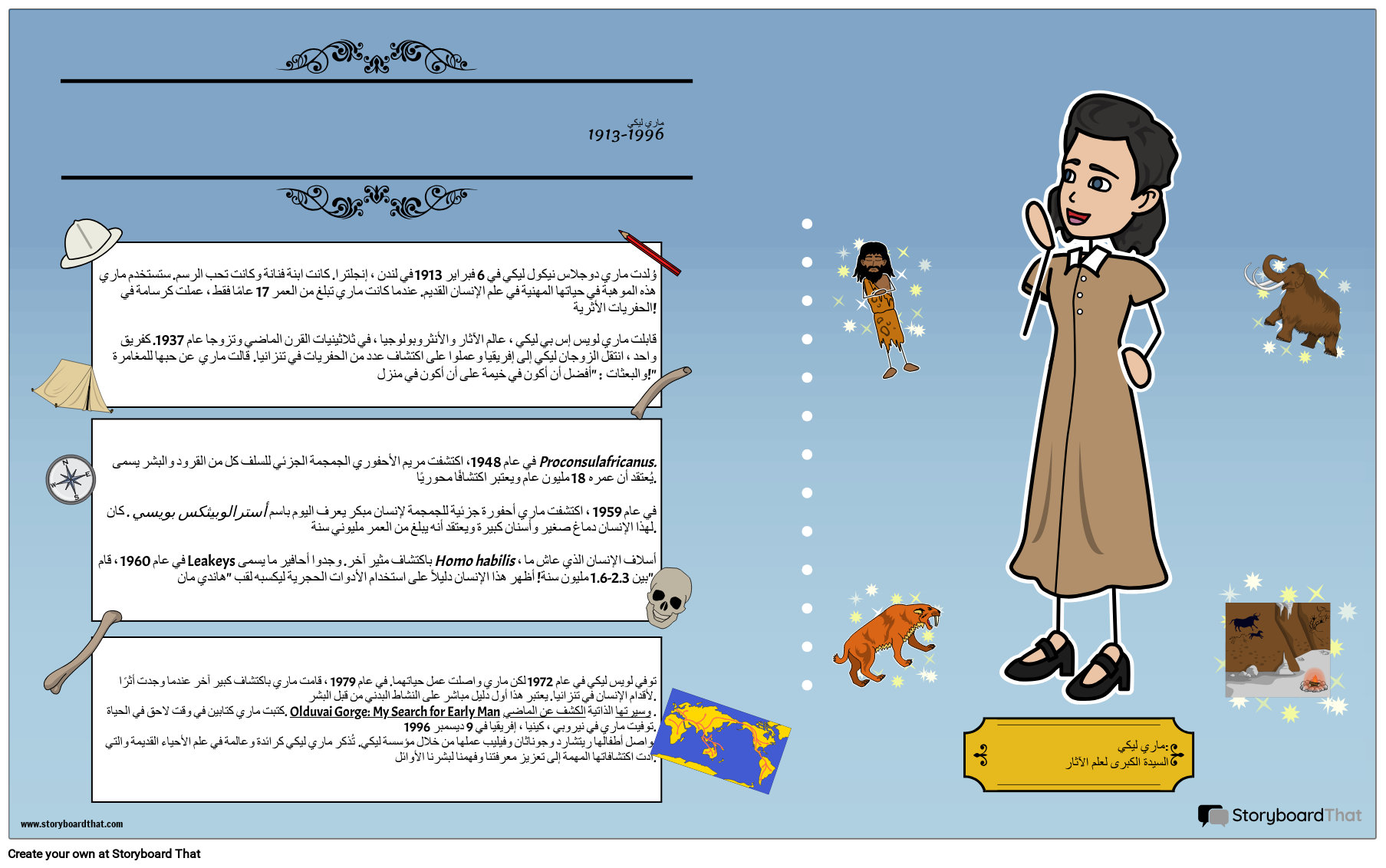 يمكن للطلاب البحث وإنشاء ملصق سيرة ذاتية عن شخص ساهم في معرفتنا بالتطور والبشر الأوائل! يدور هذا الملصق حول ماري ليكي ، عالمة الأنثروبولوجيا القديمة الشهيرة!