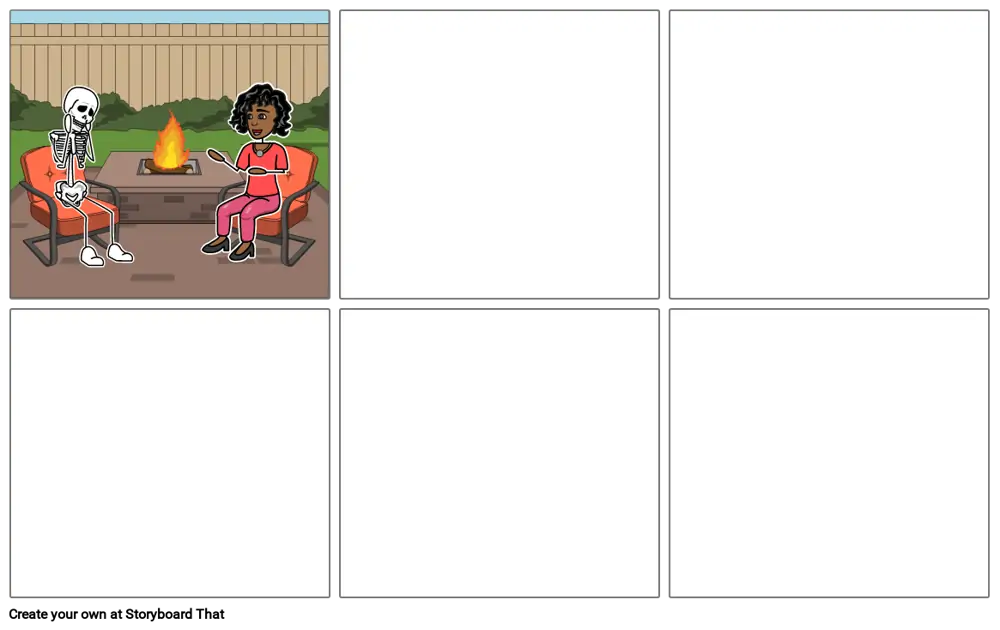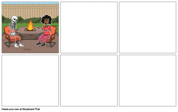 يمكن للطلاب استخدام الخلية الأولى من مشهد حفرة النار في الفناء الخلفي غير العادي كمحفز للقصة وإنشاء قصتهم الخاصة!