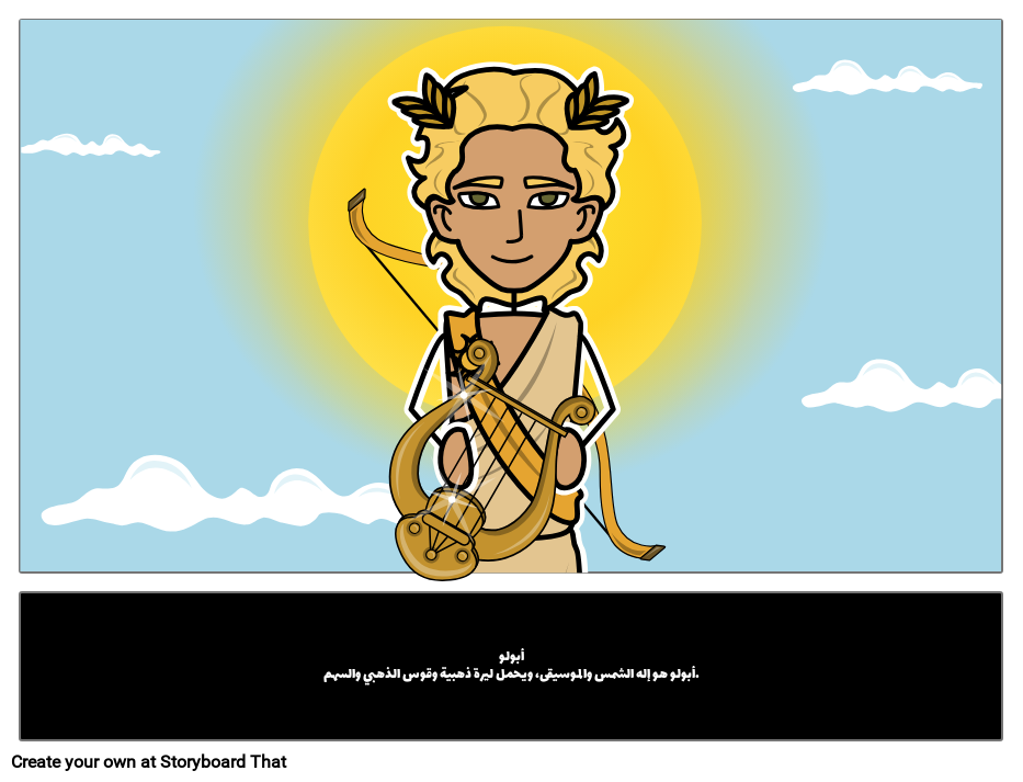 أبولوأبولو هو إله الشمس والموسيقى، ويحمل ليرة ذهبية وقوس الذهبي والسهم.