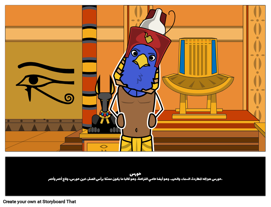 حورسحورس هو إله المطاردة، السماء، والحرب. وهو أيضا حامي الفراعنة. وهو غالبا ما يكون ممثلا برأس الصقر، عين حورس، وتاج أحمر وأحمر.