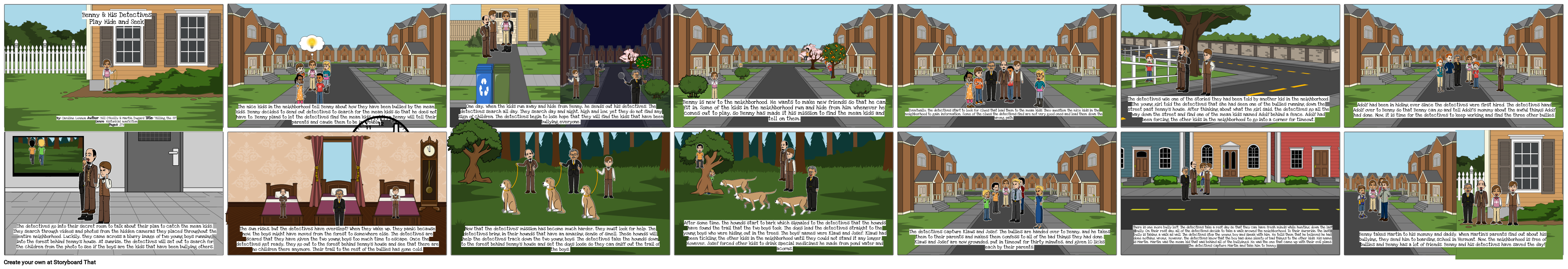 Benny takes Martin to his mommy and daddy. When Martin’s parents find out about his bullying, they send him to boarding school in Vermont. Now, the neighborhood is free of bullies and Benny has a lot of friends. Benny and his detectives have saved the day!