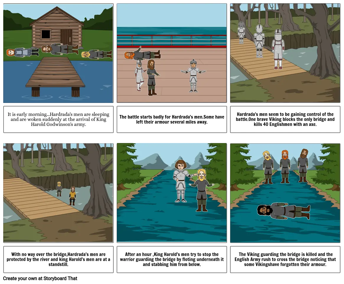 The Viking guarding the bridge is killed and the English Army rush to cross the bridge noticing that some Vikingshave forgotten their armour.