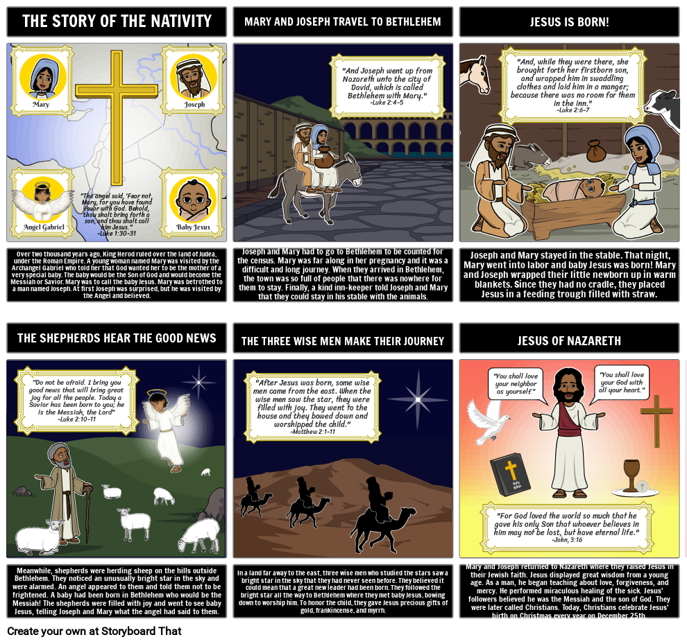התלמידים יכולים להמחיש את חלקי הסיפור הנוגע לנצרות, כמו לידתו של ישו, ביוגרפיה או ספרות אחרת.