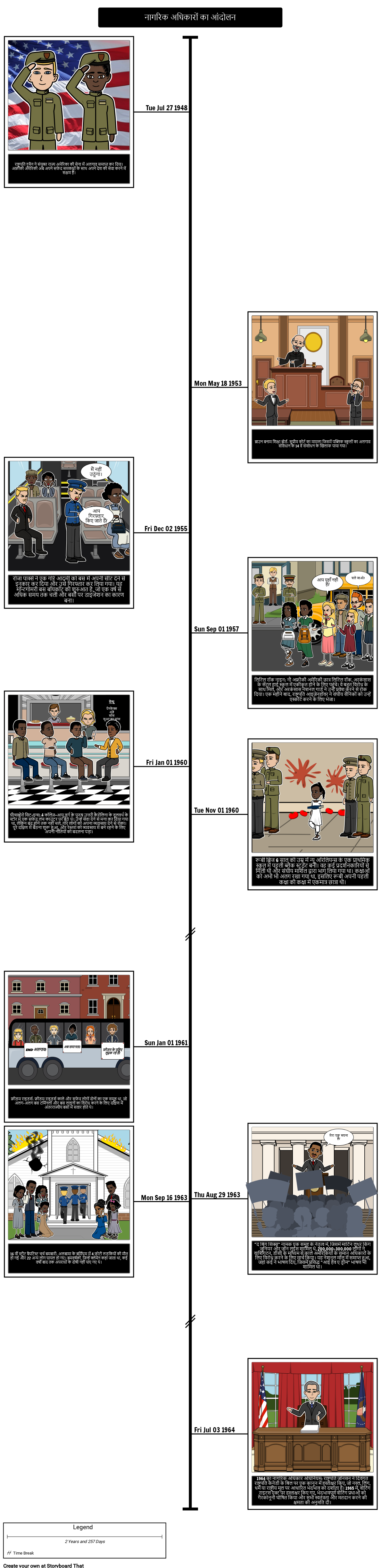 सिविल राइट्स मूवमेंट के दौरान हुई कई महत्वपूर्ण घटनाओं को दर्शाते हुए एक समयरेखा बनाएं।