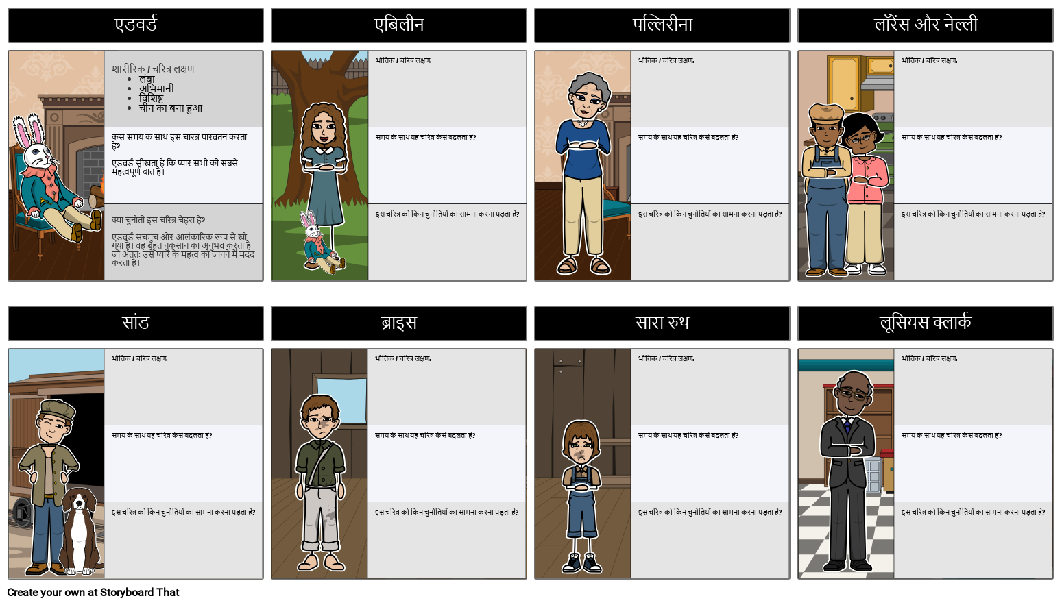 भौतिक / चरित्र लक्षण: समय के साथ यह चरित्र कैसे बदलता है? इस चरित्र को किन चुनौतियों का सामना करना पड़ता है?