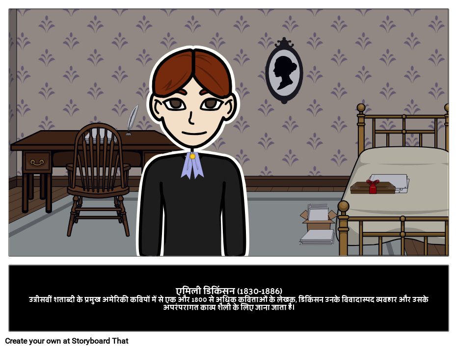 एमिली डिकिंसन (1830-1886)उन्नीसवीं शताब्दी के प्रमुख अमेरिकी कवियों में से एक और 1800 से अधिक कविताओं के लेखक, डिकिंसन उनके विवादास्पद व्यवहार और उसके अपरंपरागत काव्य शैली के लिए जाना जाता है।