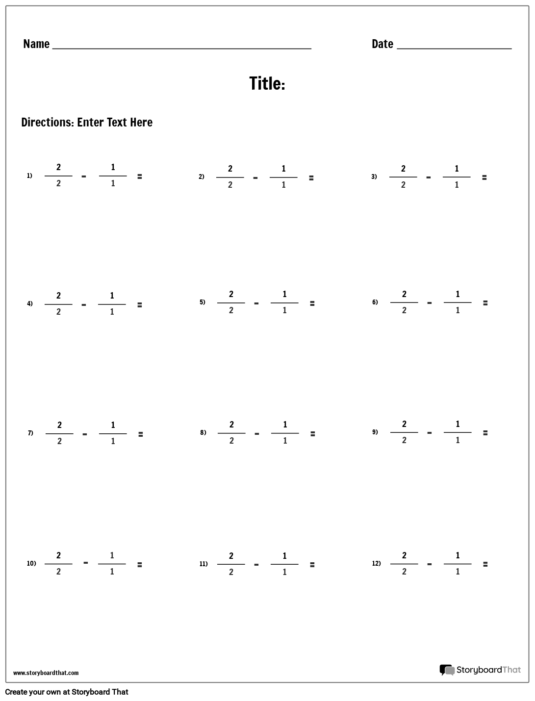 कस्टम घटाव कार्यपत्रक | अपने विद्यार्थियों के लिए भिन्नों को घटाने के लिए कार्यपत्रक बनाएं!