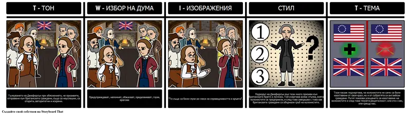 Анализирането на тон и тема разкрива намеренията на автора и емоционалното въздействие. В Декларацията за независимост разбирането на тези елементи помага на учениците да усетят чувствата и мотивациите на колонистите, като задълбочават разбирането им за историята.