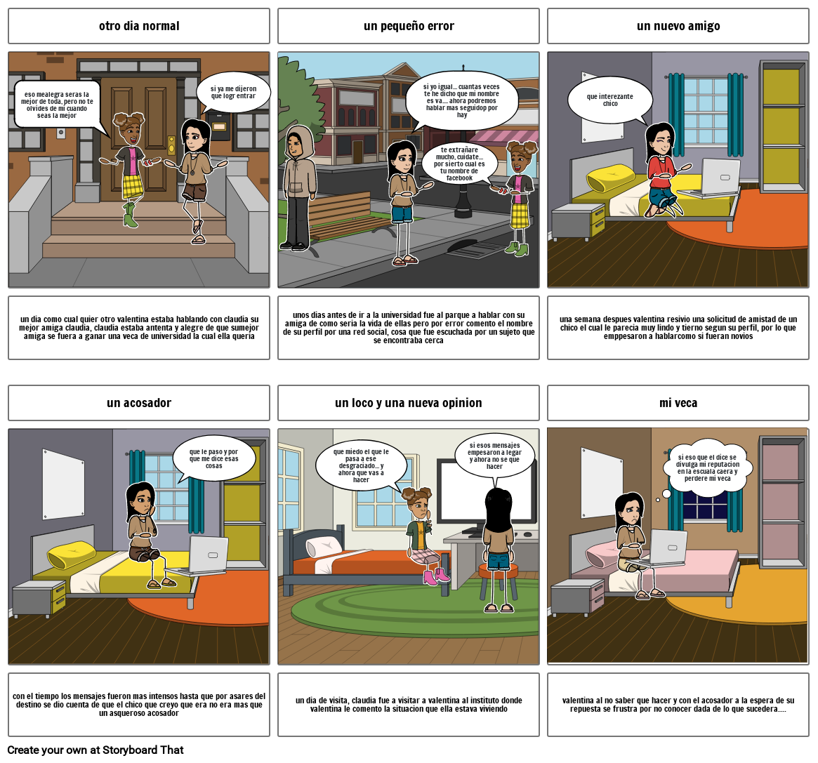 valentina al no saber que hacer y con el acosador a la espera de su repuesta se frustra por no conocer dada de lo que sucedera....
