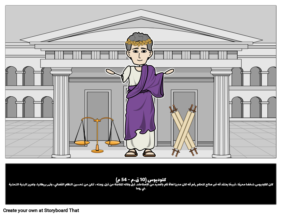 كلاوديوس | كان كلاوديوس شخصًا محرجًا ، قبيحًا يعتقد أنه غير صالح للحكم رغم أنه كان مديرًا فعالًا قام بالعديد من الإصلاحات. قبل وفاته المفاجئة من قبل زوجته ، تمكن من تحسين النظام القضائي ، وقهر بريطانيا ، وتعزيز البنية التحتية في روما.