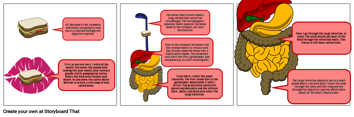 Hi! My name is Mr. sandwich and today I am going to lead you to a journey through the digestive system.