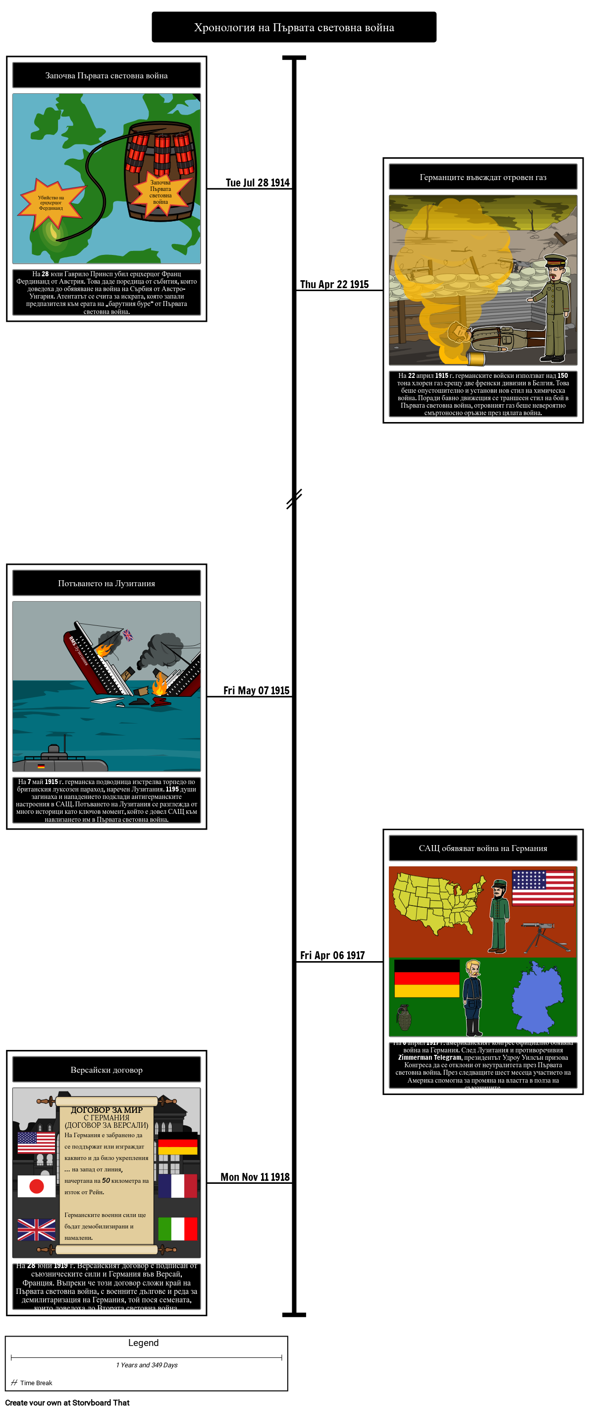 На 7 май 1915 г. германска подводница изстрелва торпедо по британския луксозен параход, наречен Лузитания. 1195 души загинаха и нападението подклади антигерманските настроения в САЩ. Потъването на Лузитания се разглежда от много историци като ключов момент, който е довел САЩ към навлизането им в Първата световна война.
