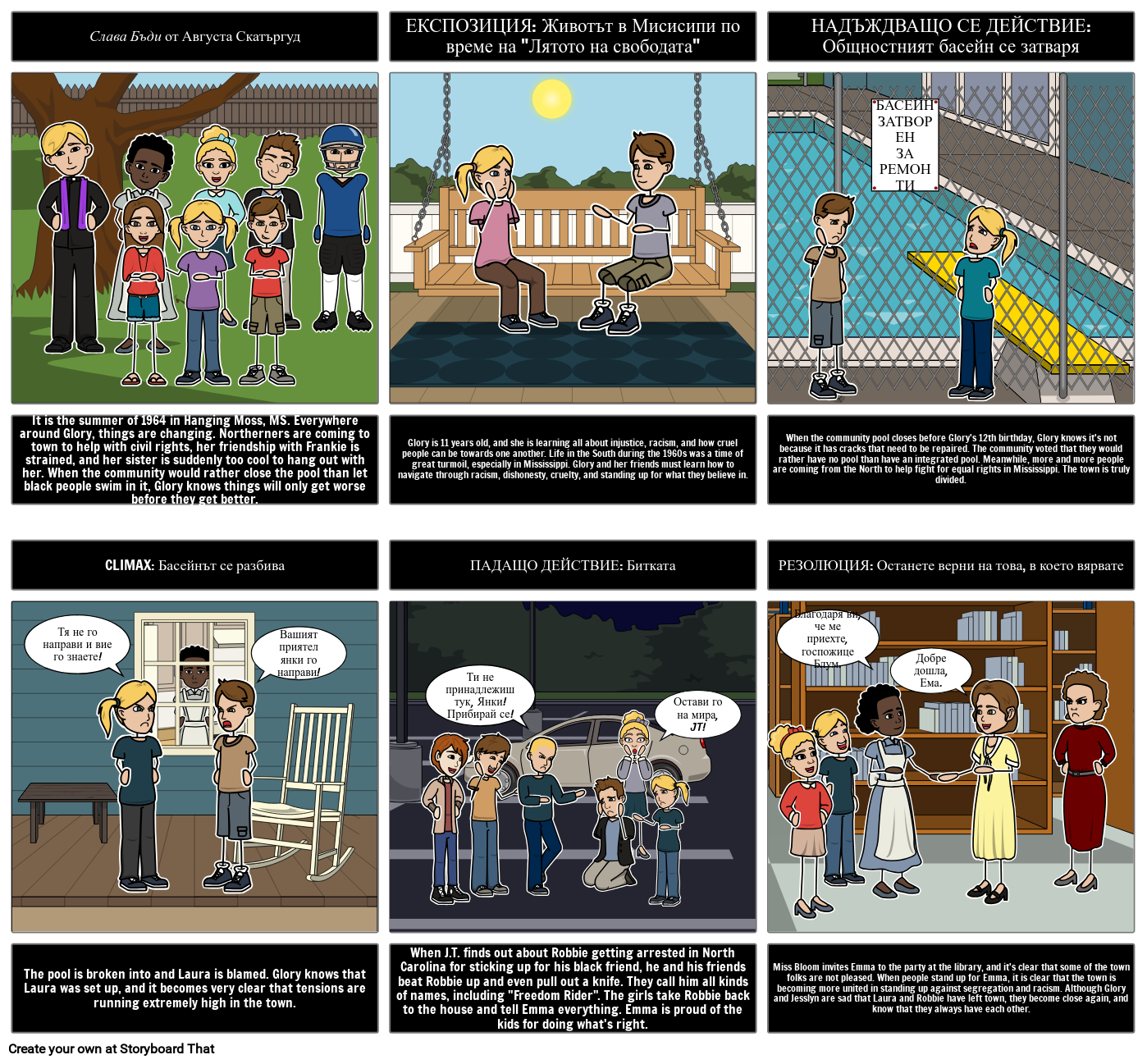 When the community pool closes before Glory's 12th birthday, Glory knows it's not because it has cracks that need to be repaired. The community voted that they would rather have no pool than have an integrated pool. Meanwhile, more and more people are coming from the North to help fight for equal rights in Mississippi. The town is truly divided.