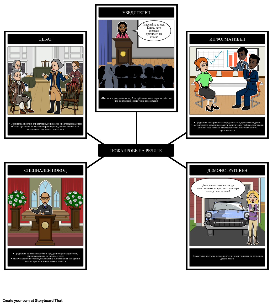 • Има за цел да вдъхнови или убеди публиката да предприеме действие или да приеме гледната точка на говорещия