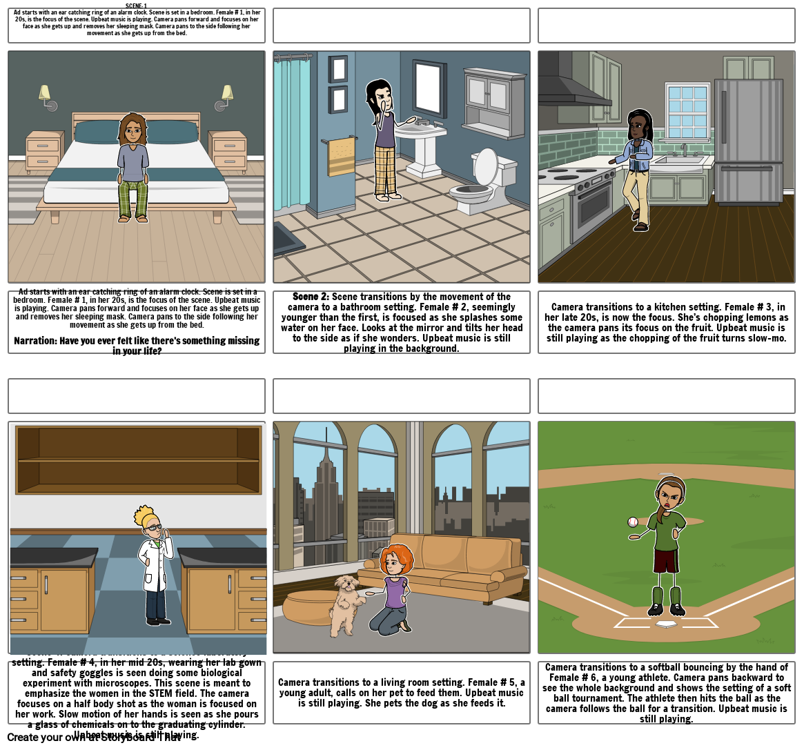 #160;Ad starts with an ear catching ring of an alarm clock. Scene is set in a bedroom. Female # 1, in her 20s, is the focus of the scene. Upbeat music is playing. Camera pans forward and focuses on her face as she gets up and removes her sleeping mask. Camera pans to the side following her movement as she gets up from the bed. Narration: Have you ever felt like there's something missing in your life?