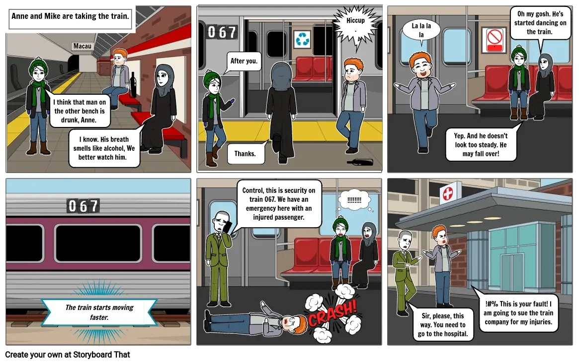 !#% This is your fault! I am going to sue the train company for my injuries.