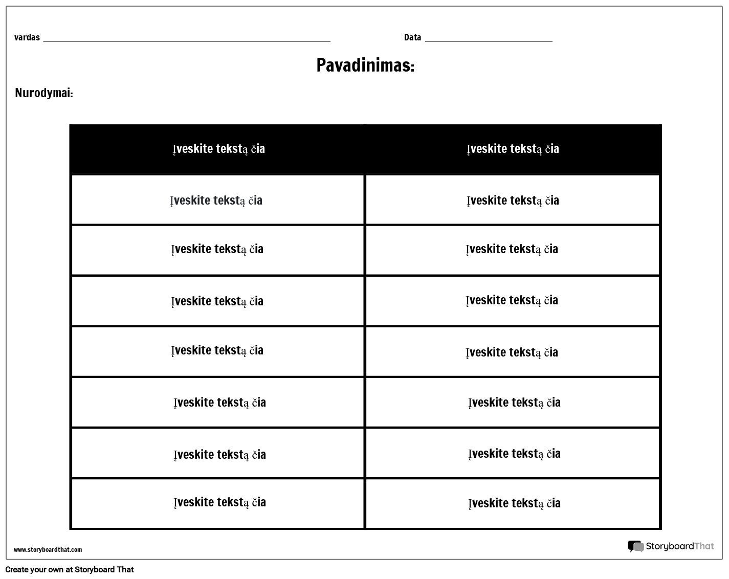 Lentelė – 2 Stulpeliai, 7 Eilutės