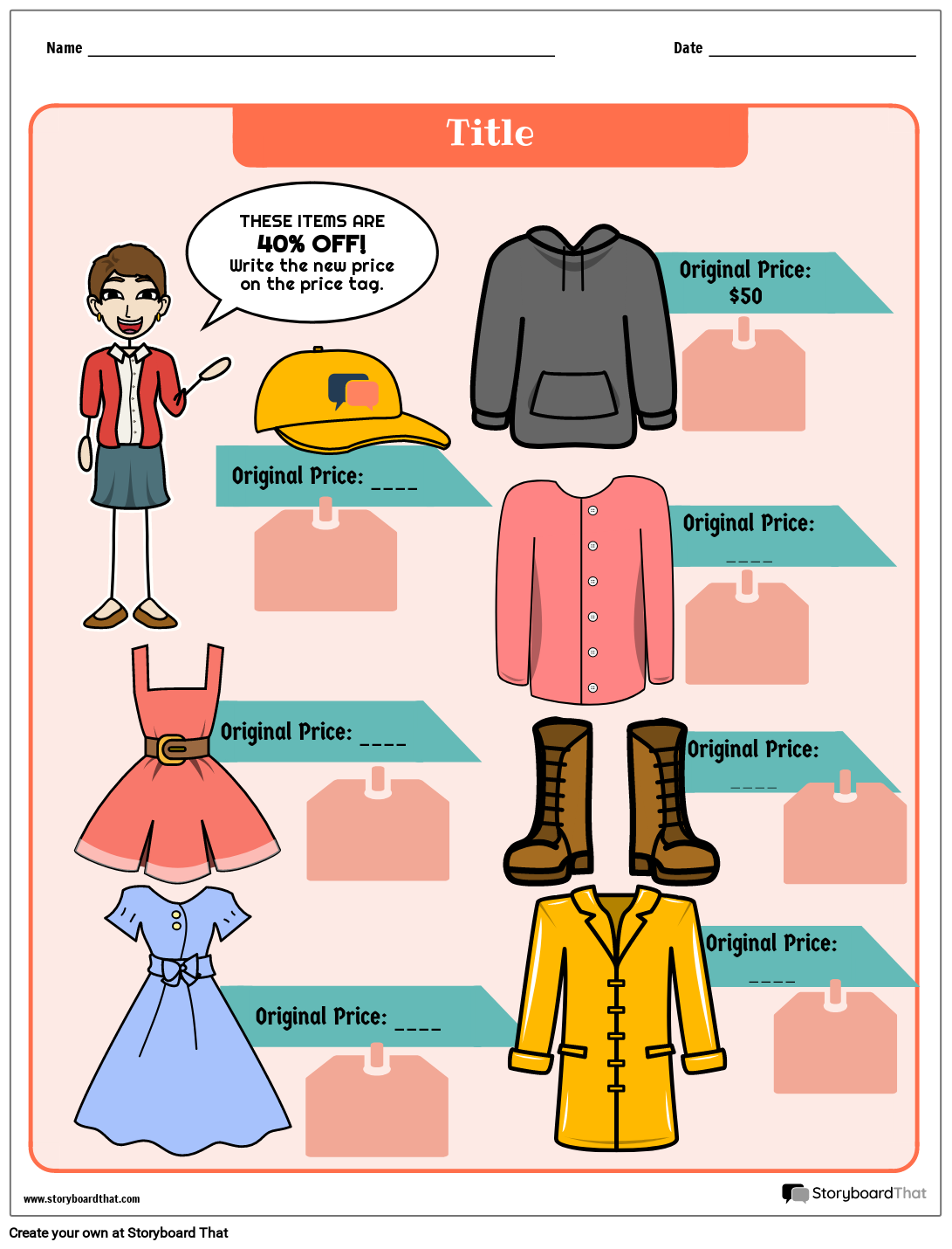 - Working with Percentages Story Problems: Provide children with word problems that involve working with percentages. Percent worksheets can include problems where they must solve word problems by determining discounts, calculate sales tax, and find sale prices for various items.