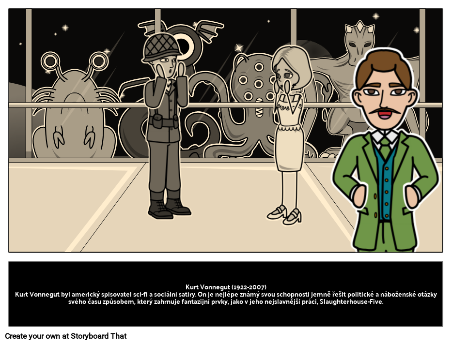 Kurt Vonnegut byl americký spisovatel sci-fi a sociální satiry. On je nejlépe známý svou schopností jemně se zabývat politickými a náboženskými otázkami svého času způsobem, který zahrnuje fantazijní prvky, stejně jako jeho nejznámější práce Slaughterhouse-Five.