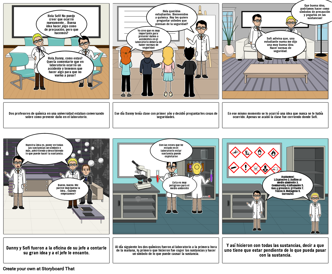 Al día siguiente los dos químicos fueron al laboratorio a la primera hora de la mañana, lo primero que hicieron fue coger las sustancias y hacer un símbolo de lo que puede causar la sustancia.
