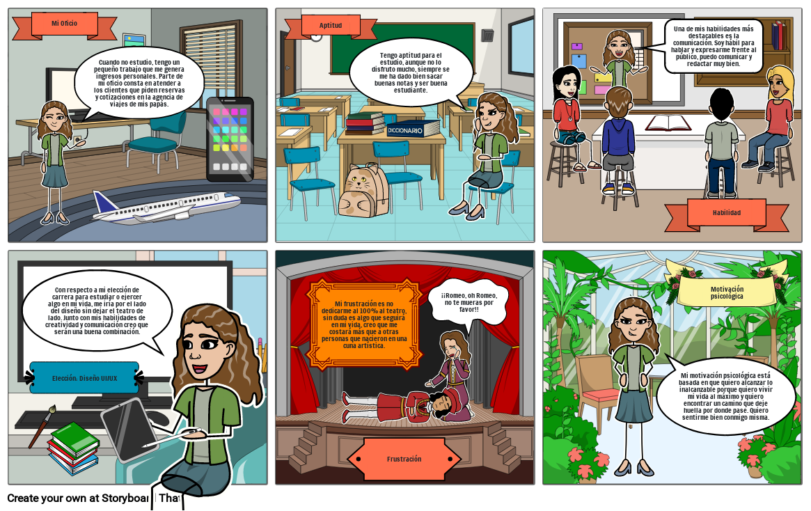 Con respecto a mi elección de carrera para estudiar o ejercer algo en mi vida, me iría por el lado del diseño sin dejar el teatro de lado. Junto con mis habilidades de creatividad y comunicación creo que serán una buena combinación.