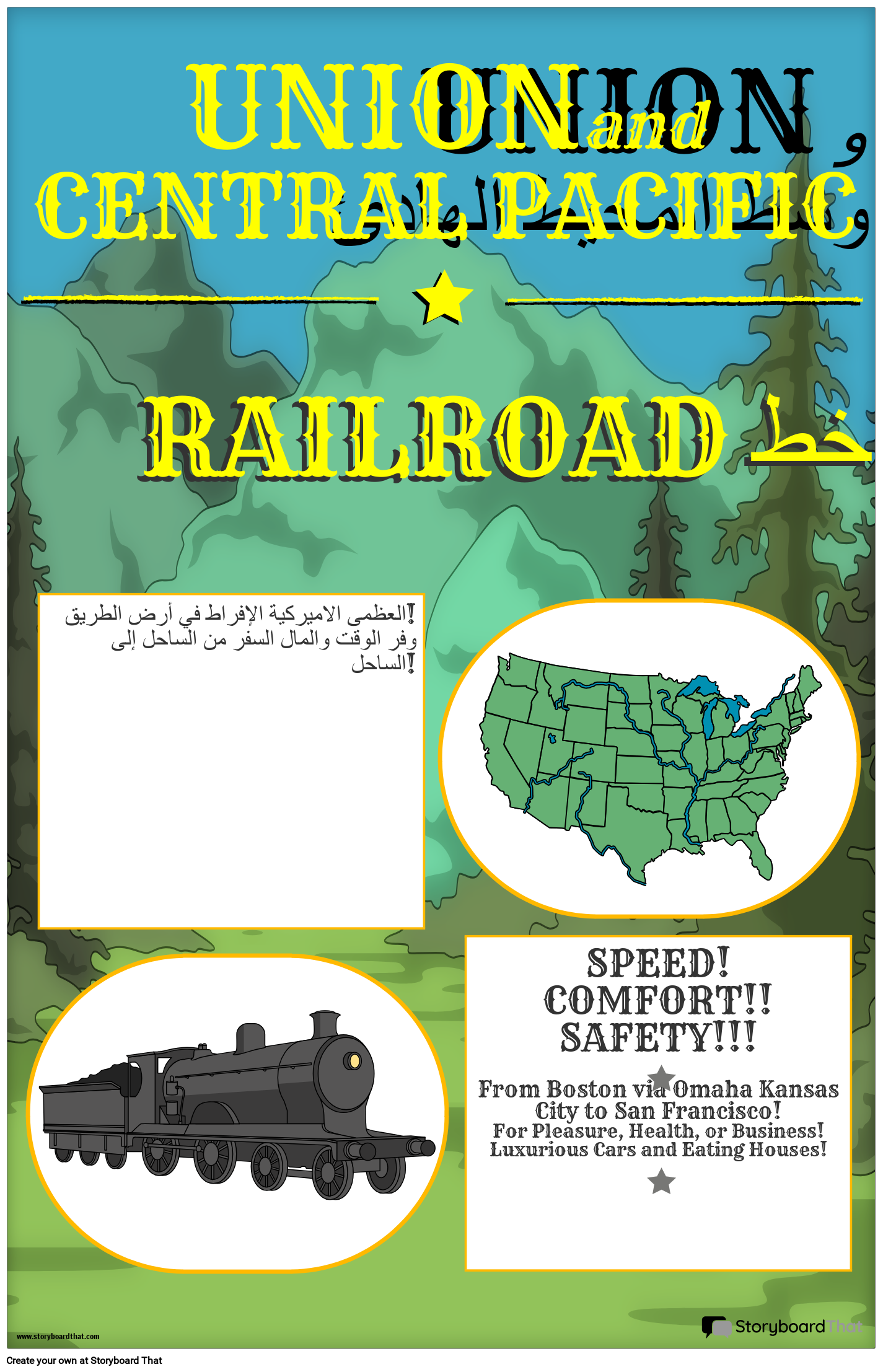 SPEED!COMFORT!!SAFETY!!!From Boston via Omaha Kansas City to San Francisco!For Pleasure, Health, or Business! Luxurious Cars and Eating Houses!