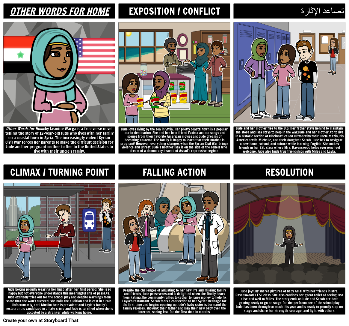 لا يساعد إنشاء مخطط مؤامرة الطلاب على تعلم أجزاء الحبكة فحسب ، بل يعزز الأحداث الرئيسية ويساعد الطلاب على تطوير فهم أكبر للهياكل الأدبية. يمكن للطلاب إنشاء لوحة عمل تلتقط القوس السردي في عمل باستخدام لوحة عمل مكونة من ست خلايا تحتوي على الأجزاء الرئيسية من مخطط الرسم التخطيطي. في هذا النشاط ، سيقوم الطلاب بإنشاء رسم تخطيطي مرئي للأحداث الرئيسية في كلمات أخرى للمنزل. يجب على الطلاب تحديد نقاط التحول الرئيسية في الرواية مثل العرض ، والعمل الصاعد ، والذروة ، والحركة المتساقطة ، والقرار.