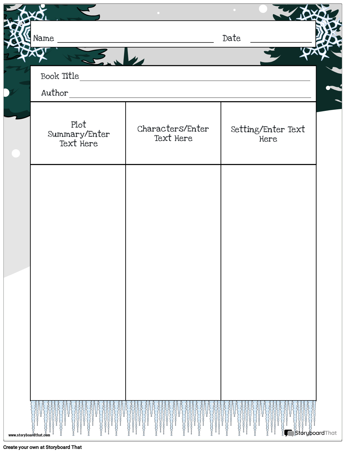 مخطط تقرير كتاب الشتاء تحت عنوان. يشمل المؤامرة والإعداد والشخصيات. منظم سهل وممتع للغاية!