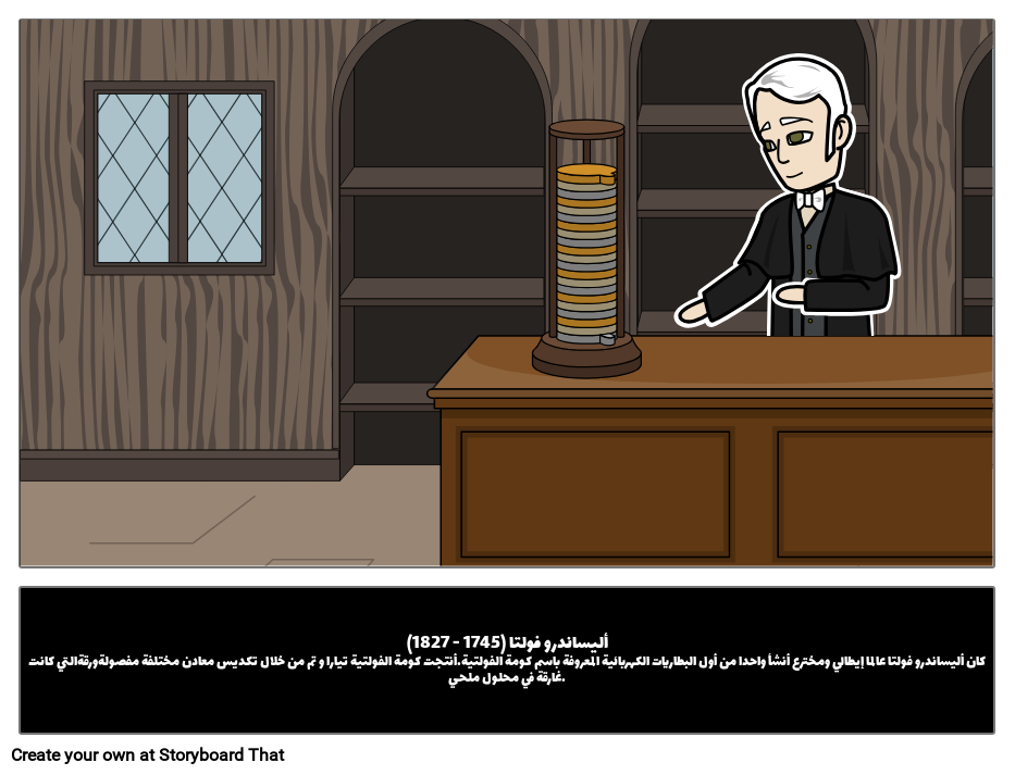 أليساندرو فولتا (1745 - 1827)كان أليساندرو فولتا عالما إيطالي ومخترع أنشأ واحدا من أول البطاريات الكهربائية المعروفة باسم كومة الفولتية.أنتجت كومة الفولتية تيارا و تم من خلال تكديس معادن مختلفة مفصولةورقةالتي كانت غارقة في محلول ملحي.