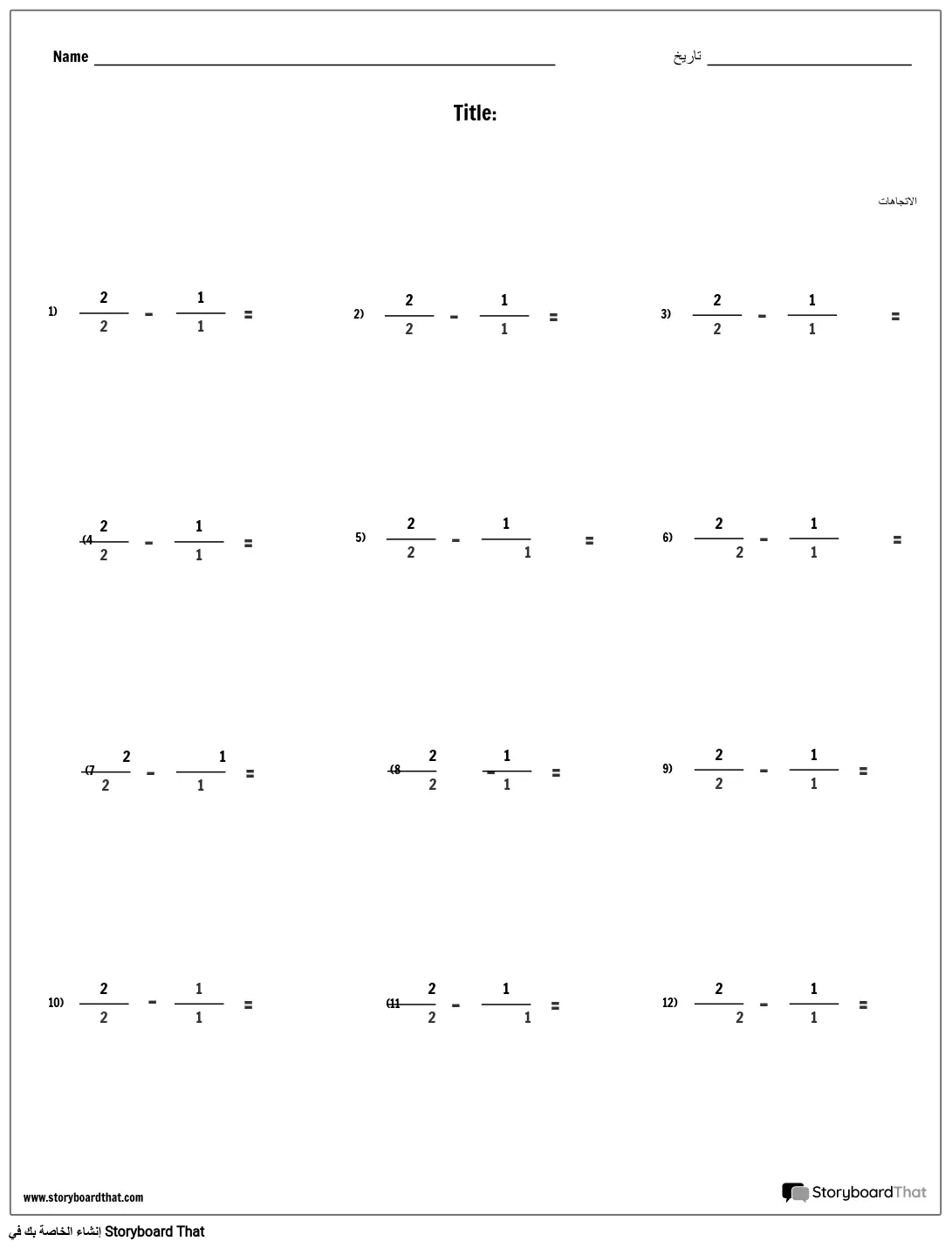 أوراق عمل طرح مخصصة | اصنع أوراق عمل لطرح الكسور مخصصة لطلابك!