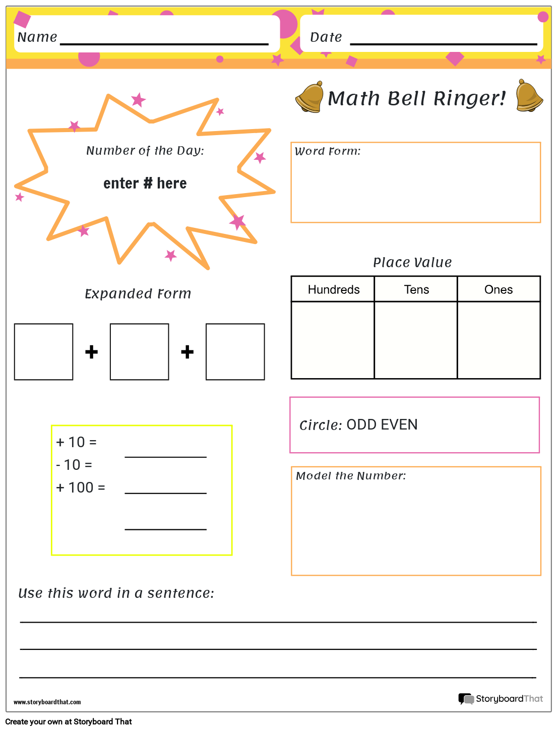 قوالب ورقة عمل بيل رينجر | إنشاء مطالبات جرس مخصصة للرياضيات