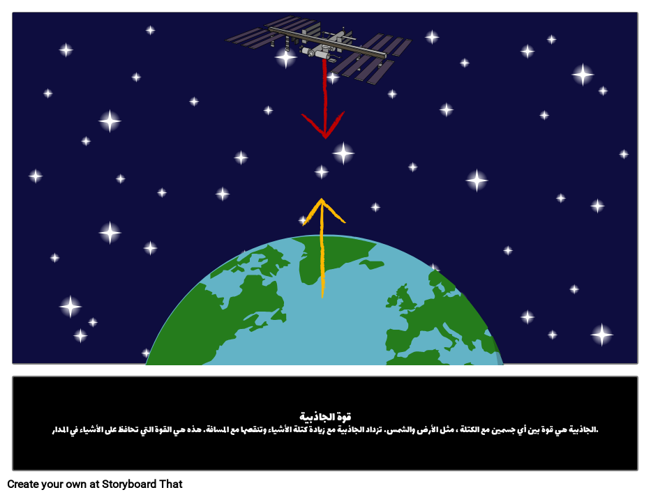قوة الجاذبيةالجاذبية هي قوة بين أي جسمين مع الكتلة ، مثل الأرض والشمس. تزداد الجاذبية مع زيادة كتلة الأشياء وتنقصها مع المسافة. هذه هي القوة التي تحافظ على الأشياء في المدار.
