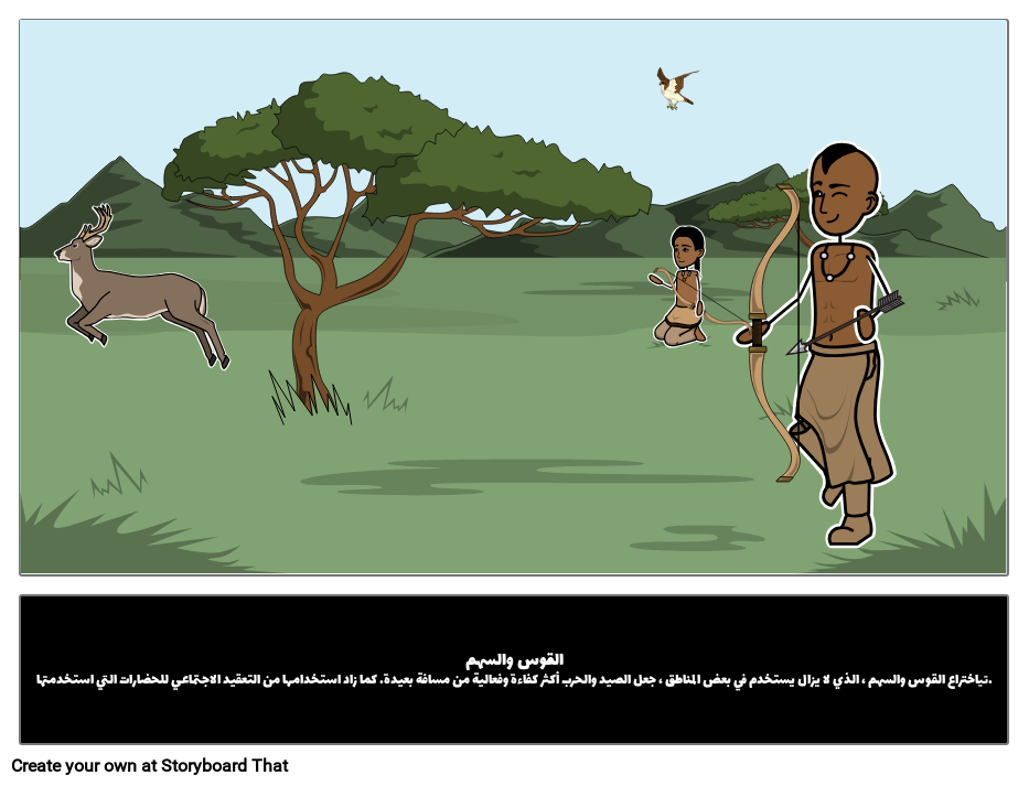 القوس والسهم | اختراع القوس والسهم ، الذي لا يزال يستخدم في بعض المناطق ، جعل الصيد والحرب أكثر كفاءة وفعالية من مسافة بعيدة. كما زاد استخدامها من التعقيد الاجتماعي للحضارات التي استخدمتها.