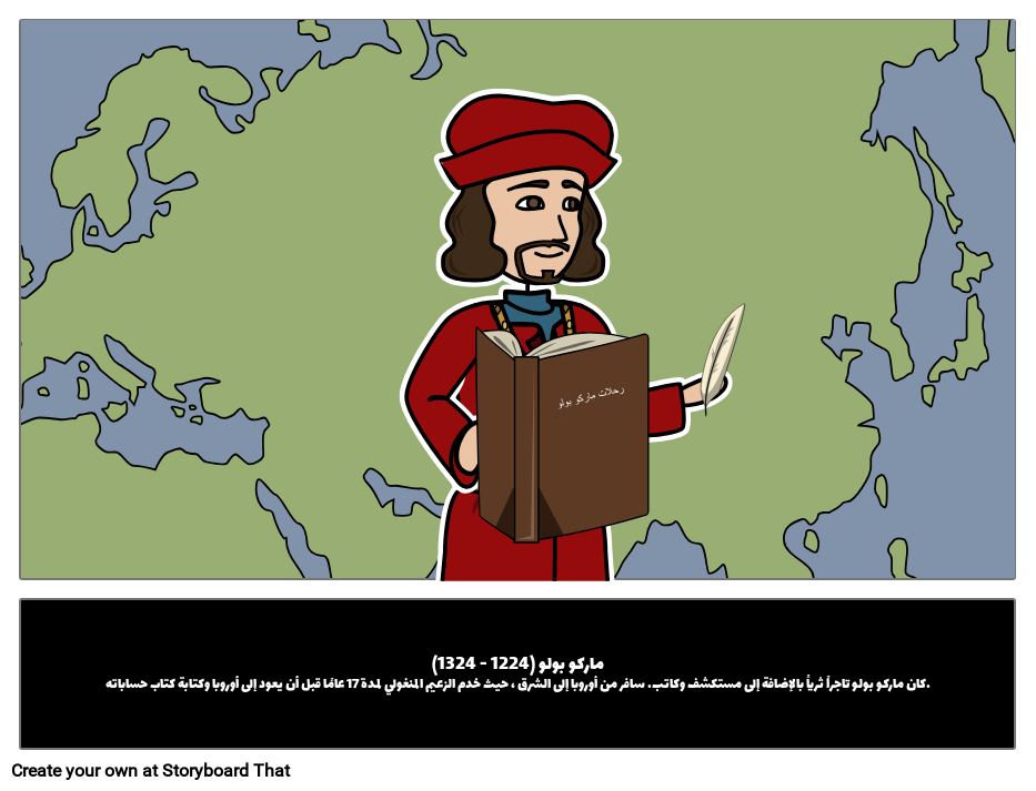 ماركو بولو (1224 - 1324)كان ماركو بولو تاجراً ثرياً بالإضافة إلى مستكشف وكاتب. سافر من أوروبا إلى الشرق ، حيث خدم الزعيم المنغولي لمدة 17 عامًا قبل أن يعود إلى أوروبا وكتابة كتاب حساباته.