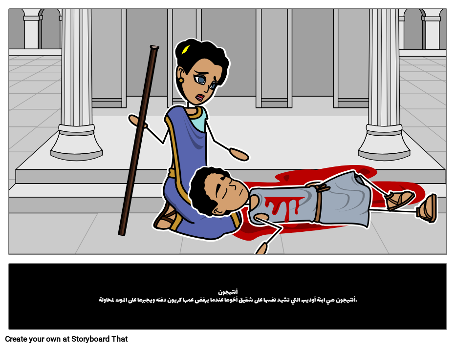 أنتيجونأنتيجون هي ابنة أوديب التي تشهد نفسها على شقيق أخوها عندما يرفض عمها كريون دفنه ويجبرها على الموت لمحاولة.