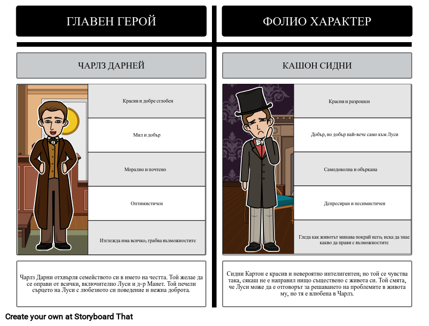 Фолио на Героите в Приказка за два Града: Чарлз Срещу Сидни