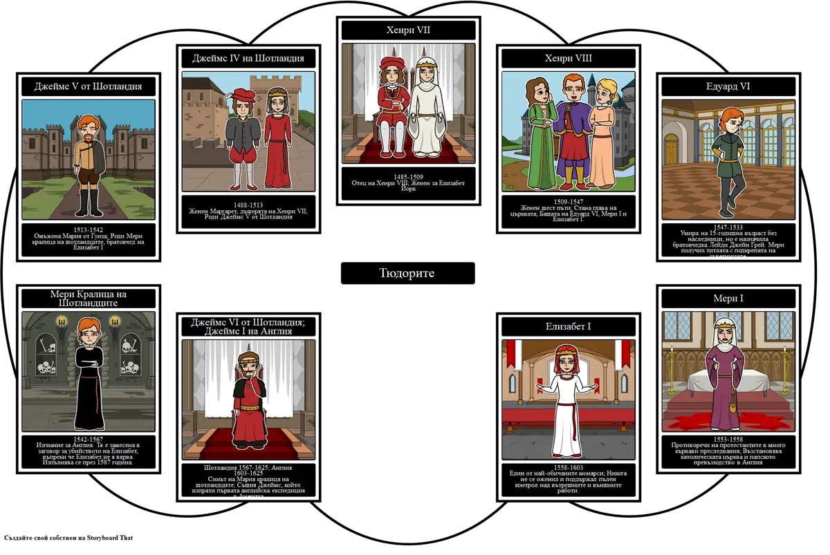 1509-1547Женен шест пъти; Стана глава на църквата; Бащата на Едуард VI, Мери I и Елизабет І.