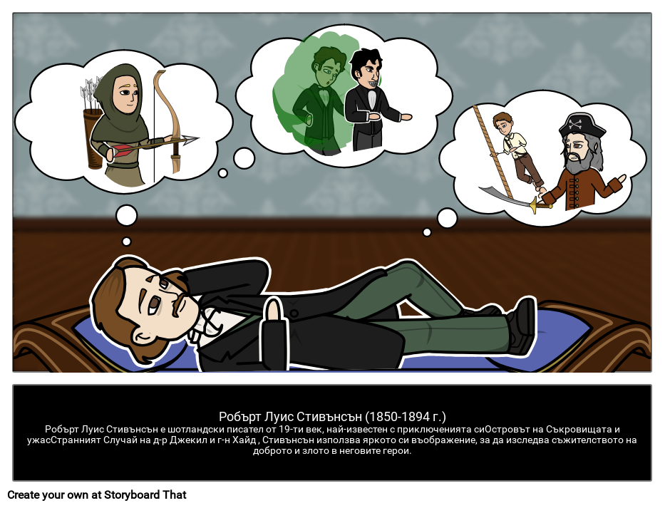Робърт Луис Стивънсън е шотландски писател от 19-ти век, известен най-вече със своя приключенски роман "Остров на съкровищата" и ужасната история "Странният случай" на д-р Джекил и г-н Хайд. Стивънсън използва яркото си въображение, за да изследва съжителството на доброто и злото в неговите герои.