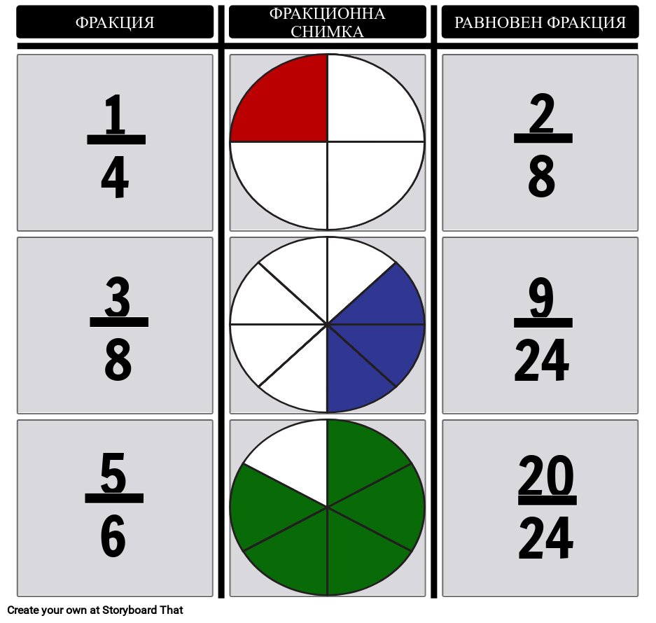 Фракционни Еквиваленти - Организатори на Графики за Математика
