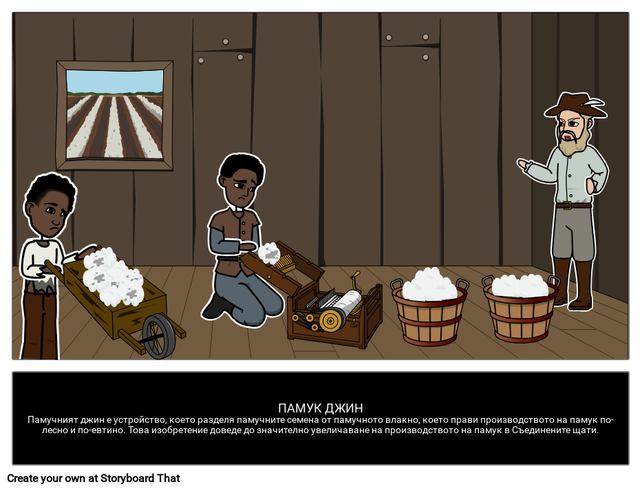ПАМУК ДЖИНПамучният джин е устройство, което разделя памучните семена от памучното влакно, което прави производството на памук по-лесно и по-евтино. Това изобретение доведе до значително увеличаване на производството на памук в Съединените щати.