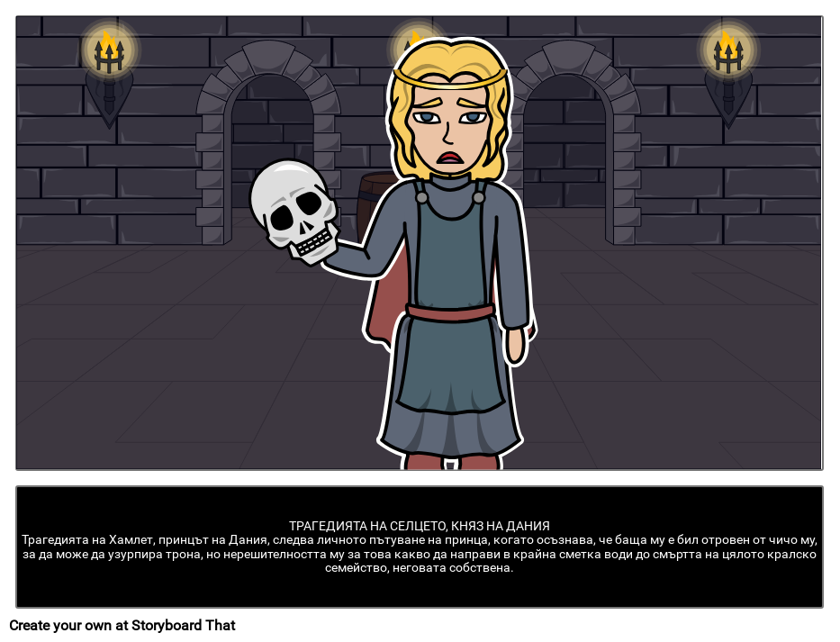 ТРАГЕДИЯТА НА СЕЛЦЕТО, КНЯЗ НА ДАНИЯТрагедията на Хамлет, принцът на Дания, следва личното пътуване на принца, когато осъзнава, че баща му е бил отровен от чичо му, за да може да узурпира трона, но нерешителността му за това какво да направи в крайна сметка води до смъртта на цялото кралско семейство, неговата собствена.