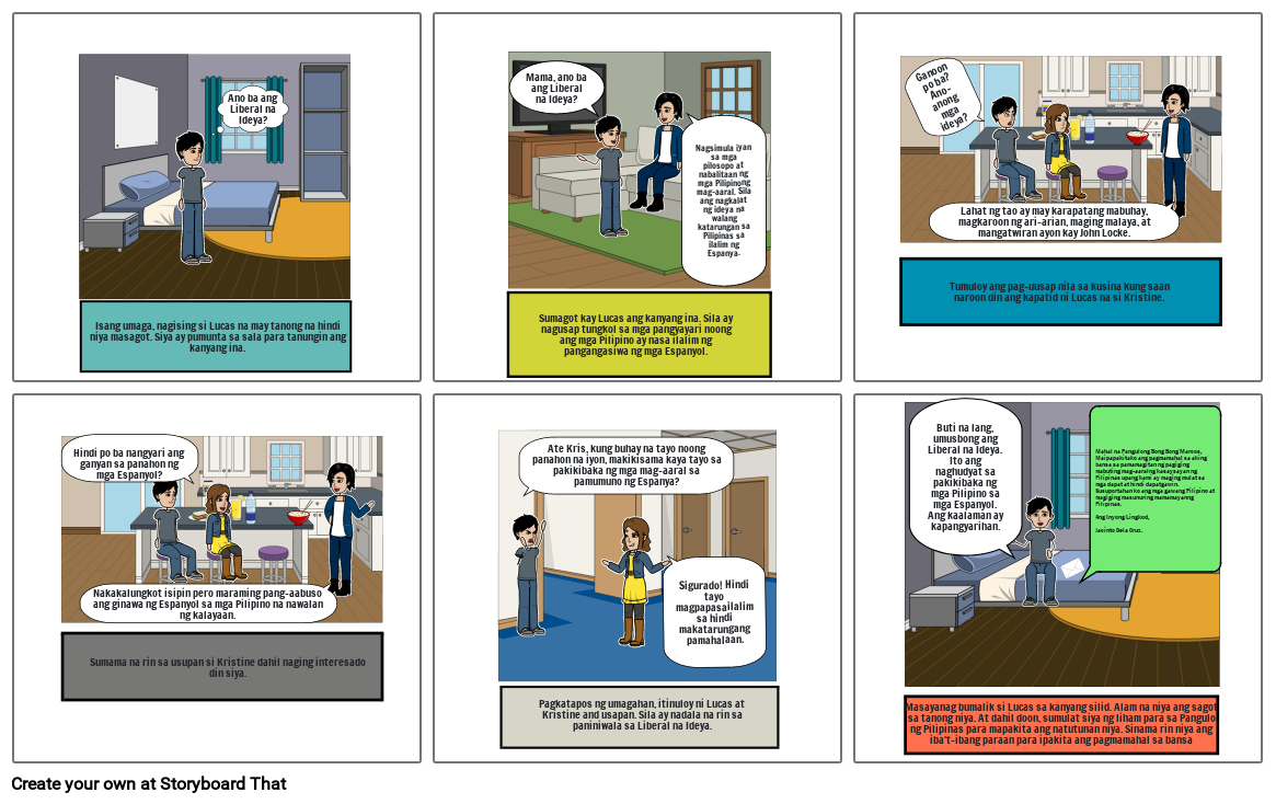 Sumagot kay Lucas ang kanyang ina. Sila ay nagusap tungkol sa mga pangyayari noong ang mga Pilipino ay nasa ilalim ng pangangasiwa ng mga Espanyol.