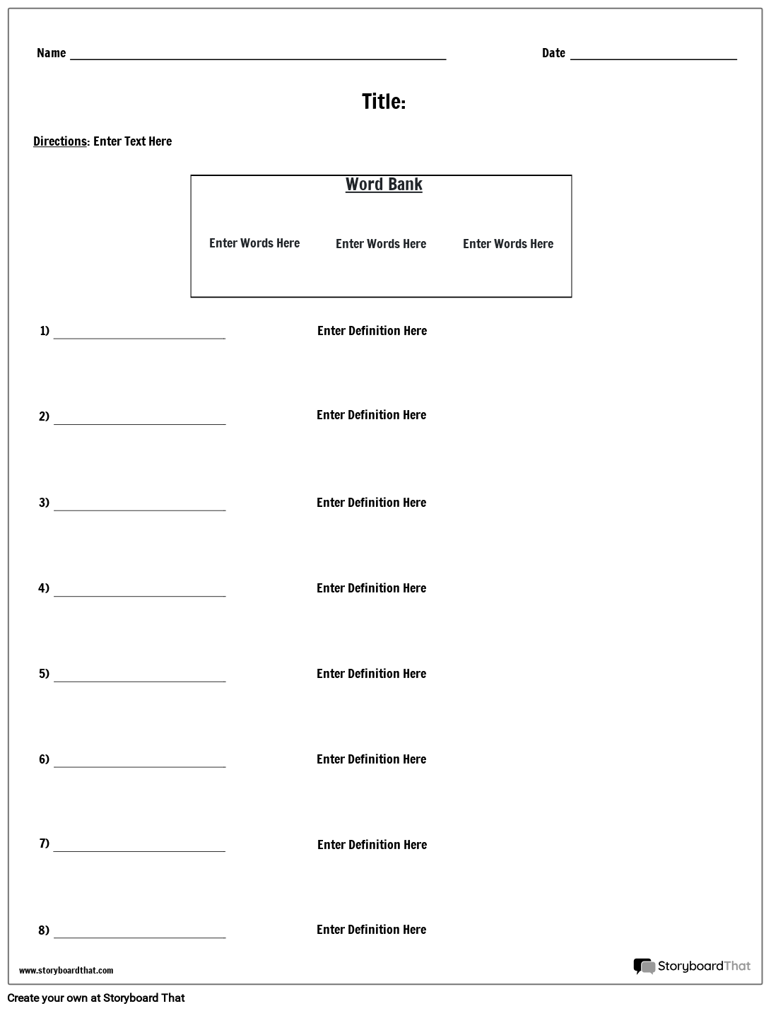 Banka slov a definice | Pracovní listy se slovní zásobou