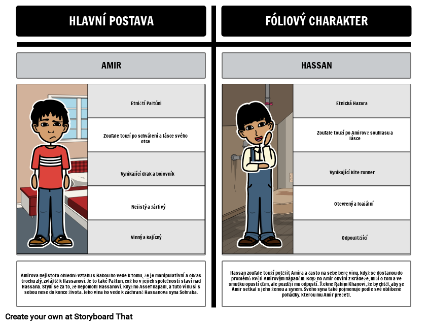 Amirova nejistota ohledně vztahu s Babou ho vede k tomu, že je manipulativní a občas trochu zlý, zvláště k Hassanovi. Je to také Paštun, což ho v jejich společnosti staví nad Hassana. Stydí se za to, že nepomohl Hassanovi, když ho Assef napadl, a tuto vinu si s sebou nese do konce života. Jeho vina ho vede k záchraně Hassanova syna Sohraba.